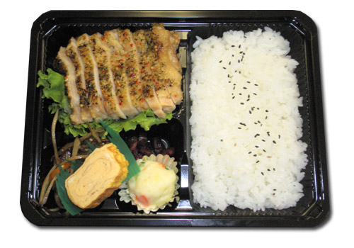 ローストチキン弁当 700円 若鶏のモモ肉をスパイシーに焼き上げました。タルタルソースでいただきます。 |