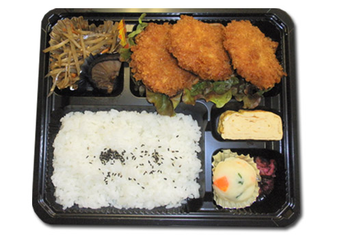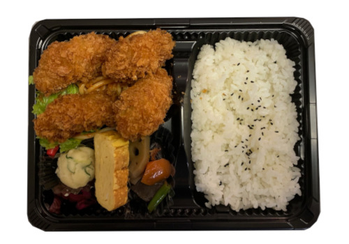 カキフライ弁当 700円 広島県産の大きなカキフライが4つ。熱々でお出しします。 |